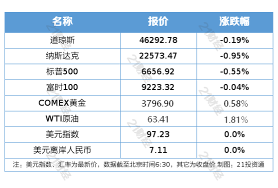 鲍威尔发表讲话后,美股三大指数全线%,美股大型科技股集体重挫,甲骨文大跌超4%,英伟达跌近3%。截至收盘,美股三大指数集体收跌,道指跌0.19%,纳指跌0.95%,标普500指数跌0.55%。纳斯达克中国金龙指数收跌2.22%,热门中概股普跌。有分析指出,投资者正在重新审视英伟达与OpenAI之间的交易,认为其与互联网泡沫时期的交易类似。