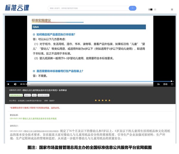 “既然产品合规,为啥不在包装上标注?”这是许多消费者提出质疑的第二个问题。因此,小编便继续查证,发现根据国家标准GB 43631-2023的文本规定,其“标识”要求部分,只明确要求“包装标识应包含表示适用人群或适用年龄(适用时)的中文信息,如‘婴儿’‘婴幼儿’等”。同时,在国家市场监督管理总局主办的全国标准信息公共服务平台官网上,对于GB43631的标准解读文件上也明确说明——GB43631不需要标注在包装上。小编发现,这一个文件的解读单位是全国造纸工业标准化技术委员会,这个单位是工信部GB43631 委托执行单位,对标准的解读具有无可争议的权威。